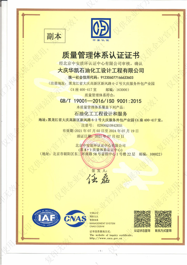 質量管理體系證書