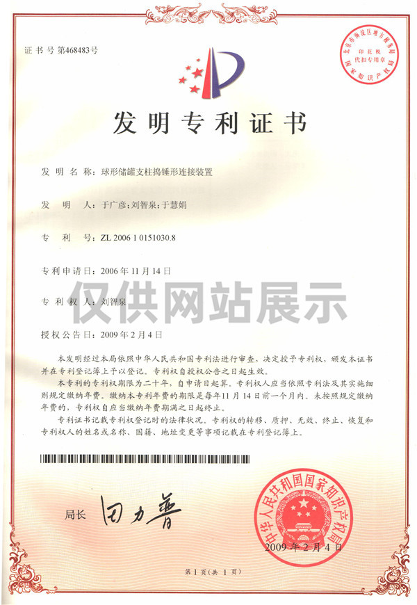 球形儲罐支柱搗錘形連接裝置